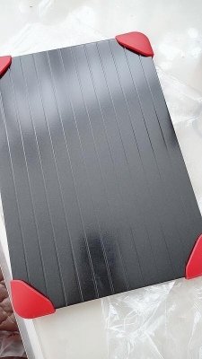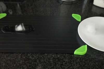 Płyta wykonana jest ze specjalnego stopu, który przewodzi ciepło o 20 000 razy lepiej aniżeli inne metale. Taca to najszybszy i naturalny sposób na rozmrożenie jedzenia.