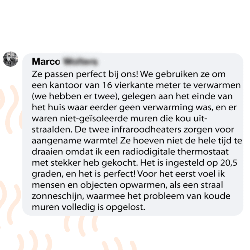 Tegelijkertijd is de verwarming extreem energiezuinig en verbruikt hij 3-4 keer minder energie dan conventionele radiatoren: alle 98% van de verbruikte energie wordt omgezet in stralingswarmte.