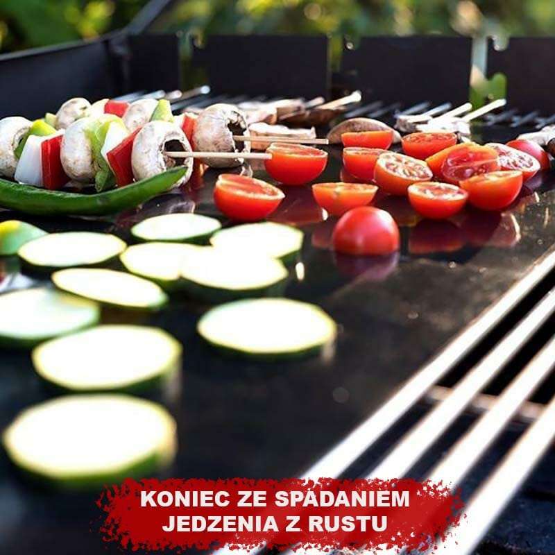 - Zapobiega przyleganiu jedzenia oraz spadaniu z rusztu