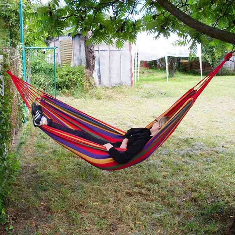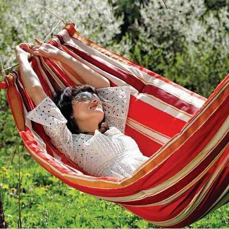 Wystarczy oba końce przywiązać do stabilnej powierzchni – haków, słupków czy drzew. Doskonały do zawieszenia na tarasie. Nawet, jeśli nie masz domu z ogrodem, nadal możesz się cieszyć wygodnym odpoczynkiem na hamaku – wystarczy że zawiesisz go na balkonie lub nawet podwiesisz w pokoju.