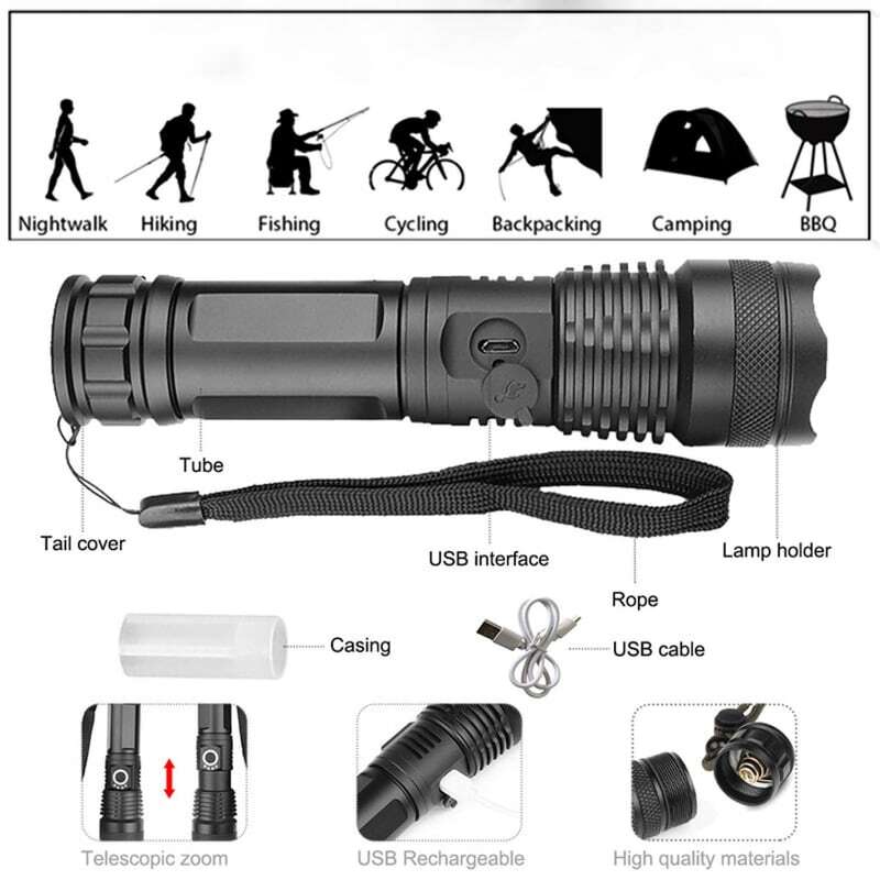 Super jasna latarka turystyczna 20 000 lumenów + prezent
