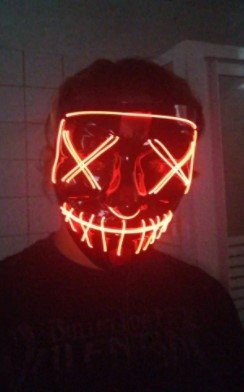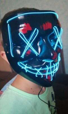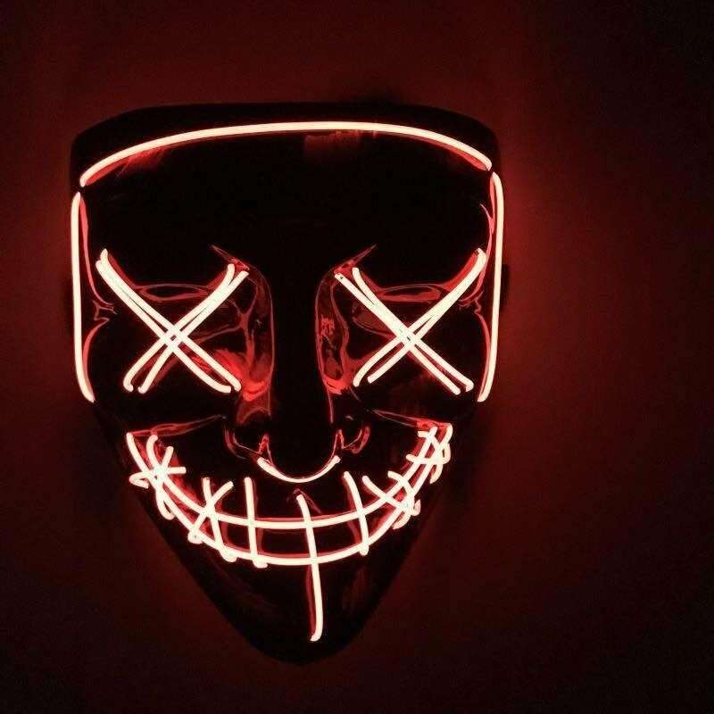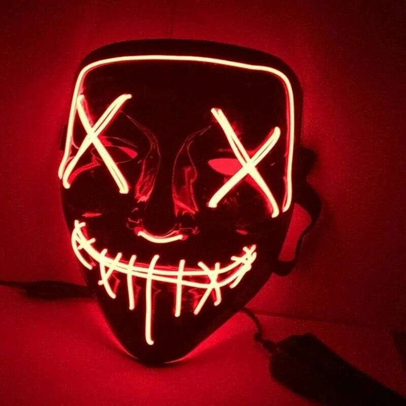 Wykonany z lekkiego, wytrzymałego i MIĘKKIEGO plastiku KASK NEONOWY “Noc oczyszczenia” z podświetleniem posiada wycięcia na oczy, nos i usta, co pozwala na dłuższe przebywanie w nim bez żadnych utrudnień.