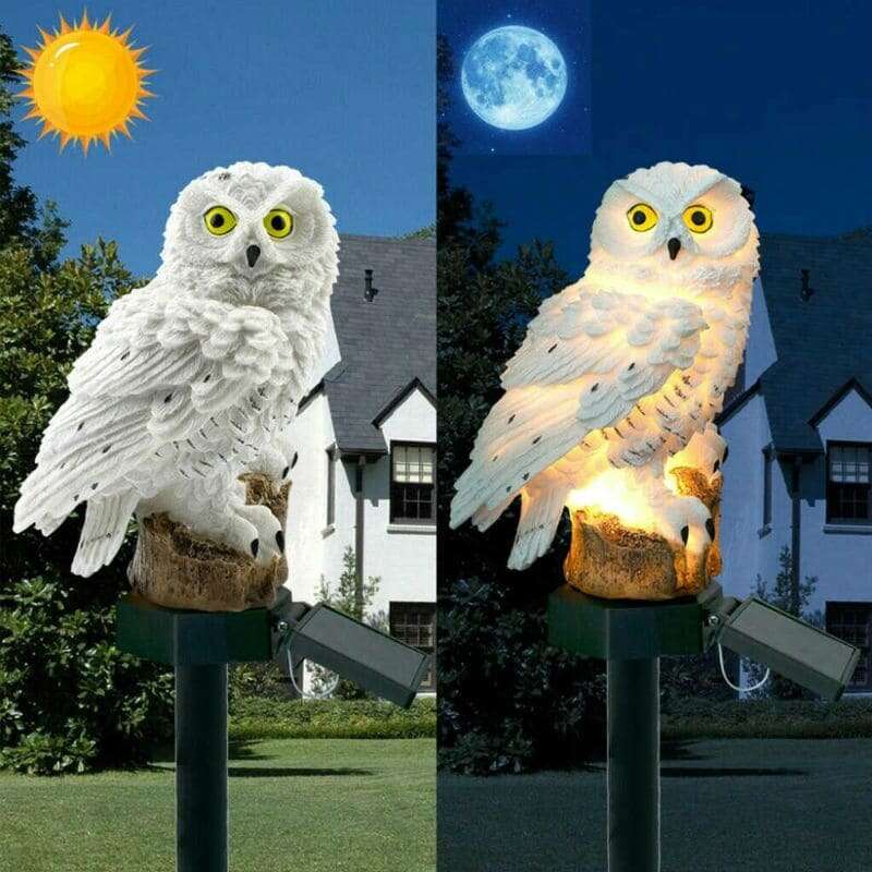 Ozdobna lampa ogrodowa LED sowa z czujnikiem zmierzchu