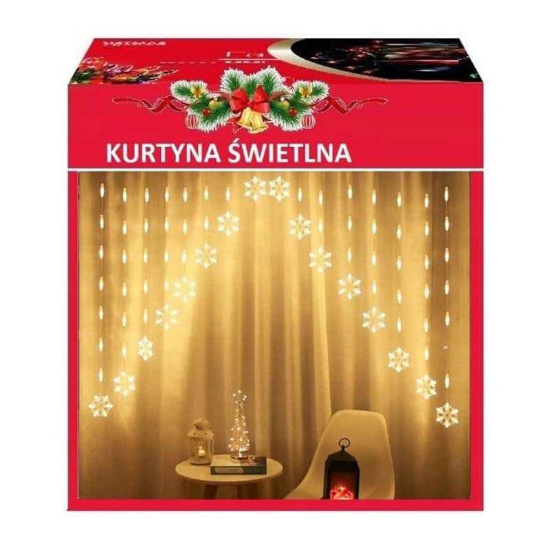 Kurtyna świetlna sople śnieżynki 136 led kolor świecenia ciepły biały