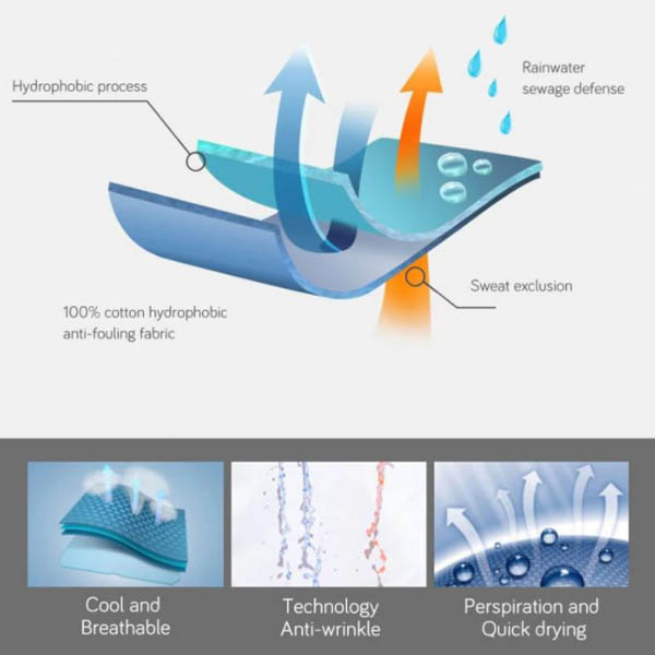 Wodoodporne koszulki hydrofobowe to całkowita nowość na rynku. Koszulka wręcz odpycha wodę, a jej zamoczenie po prostu nie jest możliwe. Teraz żaden deszcz czy brud w tej koszulce nie jest straszny ! Doskonała jakość materiału, którego nie jest w stanie nic zamoczyć albo zabrudnić !