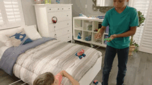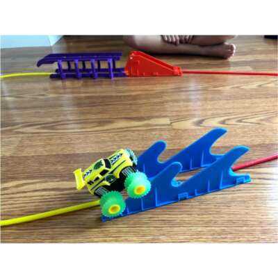 Niesamowity, niezwykle kreatywny tor dla auta, który można ustawiać w domu, w pokoju, czy w plenerze, korzystając ze zwykłych domowych przedmiotów jak krzesło, meble itd.