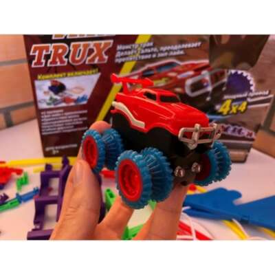 I to wszystko jest bardzo łatwe! Po prostu połącz razem ścieżki – tory – drogi i zobacz, jak Trix Truks wykonuje akrobacje – do przodu, do tyłu, do góry nogami i nie tylko!
