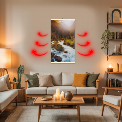 Het zorgt niet alleen voor aangename warmte in elke kamer op een zeer efficiënte en compacte manier, maar geeft de ruimte ook een nieuwe uitstraling en kleur dankzij het bedrukte, frameloze oppervlak dat in elk interieur de aandacht trekt. Het verwarmingspaneel is zeer plat – net als een schilderij – en kan daarom direct aan de muur worden opgehangen, vanwaar het een aangename warmte uitstraalt.